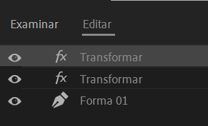 2. A la capa del “rectángulo grande” le vas añadir nuevamente el efecto transformar.